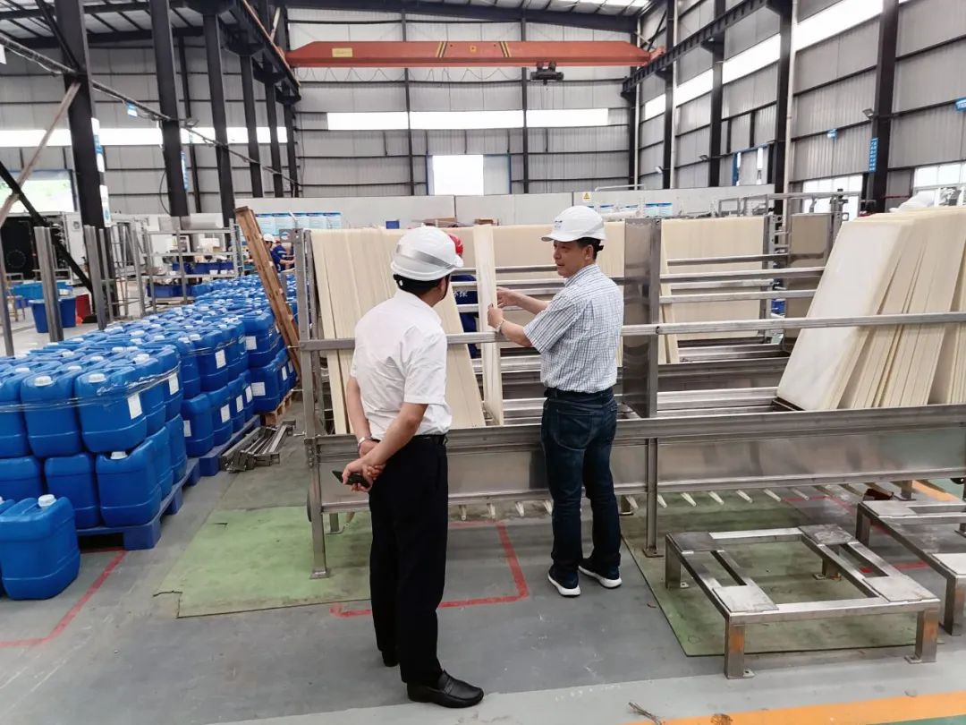 5月28日,上海水合環(huán)境工程有限公司總經(jīng)理王建新一行蒞臨成都碩特環(huán)??萍加邢薰究疾旖涣?,雙方就環(huán)保領(lǐng)域的現(xiàn)狀及相關(guān)技術(shù)進(jìn)行了討論,上海水合環(huán)境工程有限公司領(lǐng)導(dǎo)一行還參觀了碩特環(huán)保青白江工廠。
