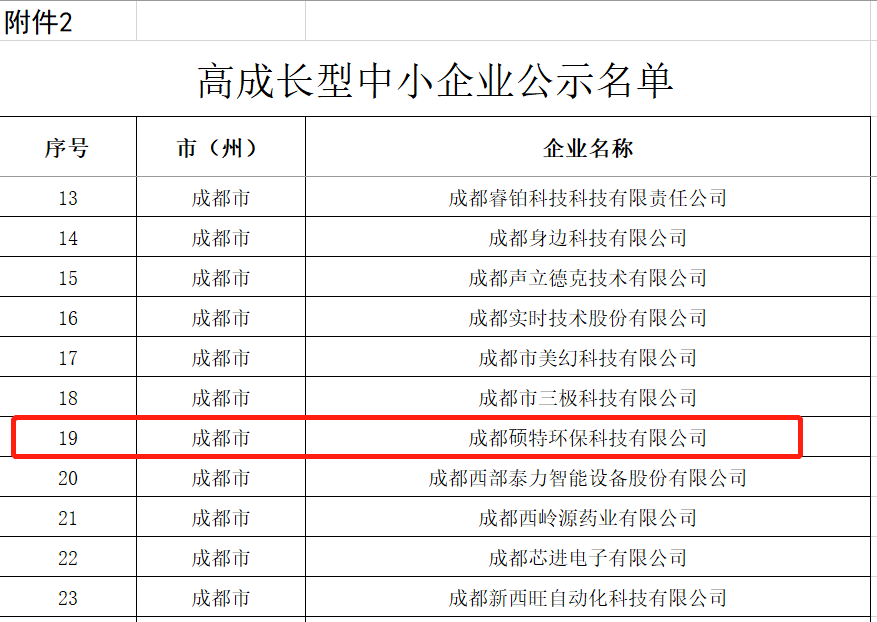 12月24日,由四川省經(jīng)濟(jì)和信息化廳組織的2020年度重點(diǎn)中小企業(yè)申報(bào)工作評選結(jié)束,成都碩特環(huán)??萍加邢薰就ㄟ^復(fù)核,進(jìn)入高成長型中小企業(yè)公示名單。