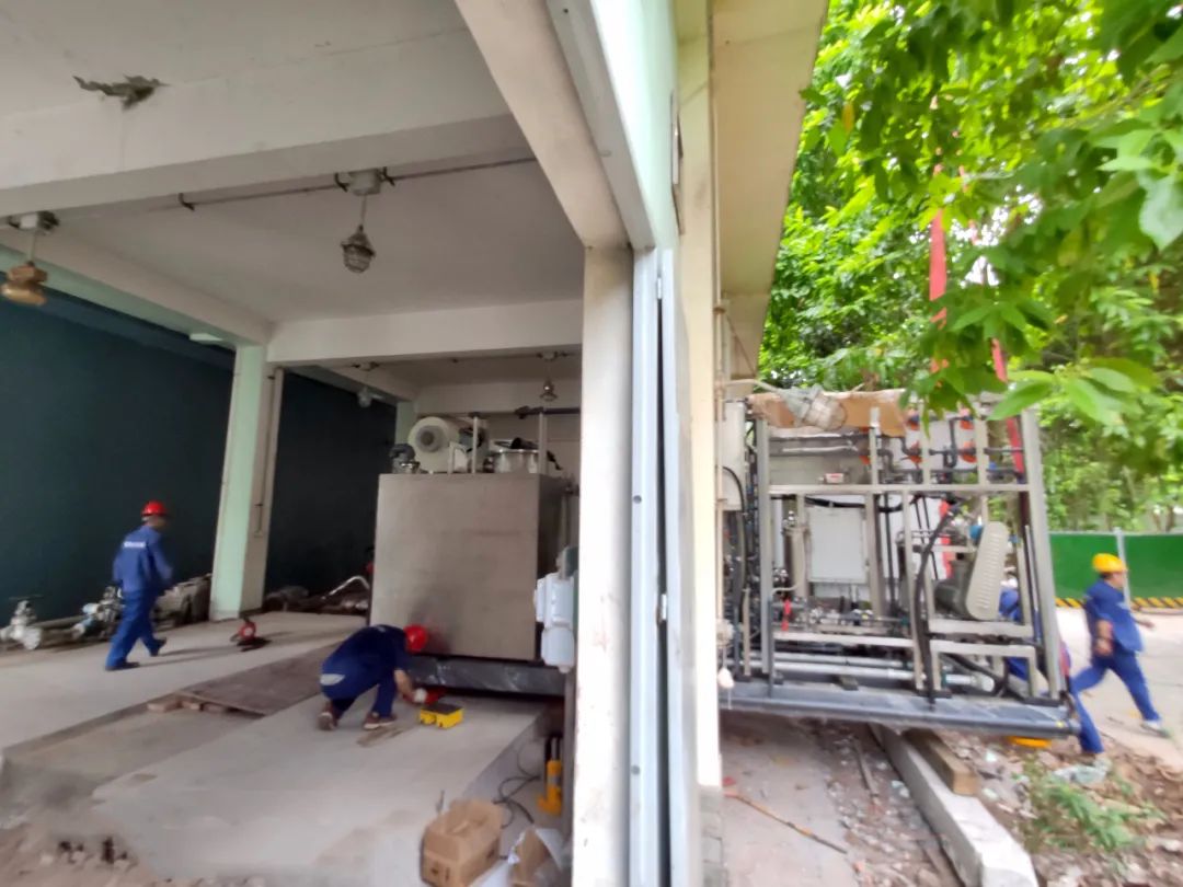 在安裝就位過程中,由于設(shè)備車間空間小,導(dǎo)致設(shè)備挪運(yùn)難度大,整個(gè)過程異常艱難,但碩特環(huán)保忠縣項(xiàng)目人員始終堅(jiān)持“迎難而上,堅(jiān)持到底”的原則,發(fā)散思維,就地取材,最終在土建方及業(yè)主的大力配合下,順利完成了就位工作。
