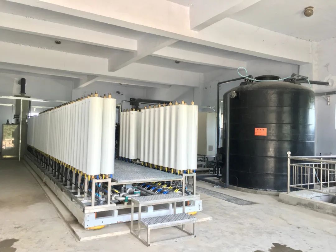 該項目系統(tǒng)設備安裝前期,公司工程部指派項目負責人提前到達現場進行系統(tǒng)安裝條件勘查。為滿足降低滲濾液調節(jié)池庫存風險的迫切需求,威縣項目組成員需盡快完成系統(tǒng)安裝、調試、產水等相關工作,項目負責人及時將情況反饋給公司領導并制定系統(tǒng)安裝施工方案。DTRO系統(tǒng)設備到場后,工程部安裝人員積極開展工作,僅耗時半天就將系統(tǒng)主體設備、系統(tǒng)配套設備、系統(tǒng)安裝所需的電氣、管道材料滿滿三大車貨全部吊裝、搬運到位。