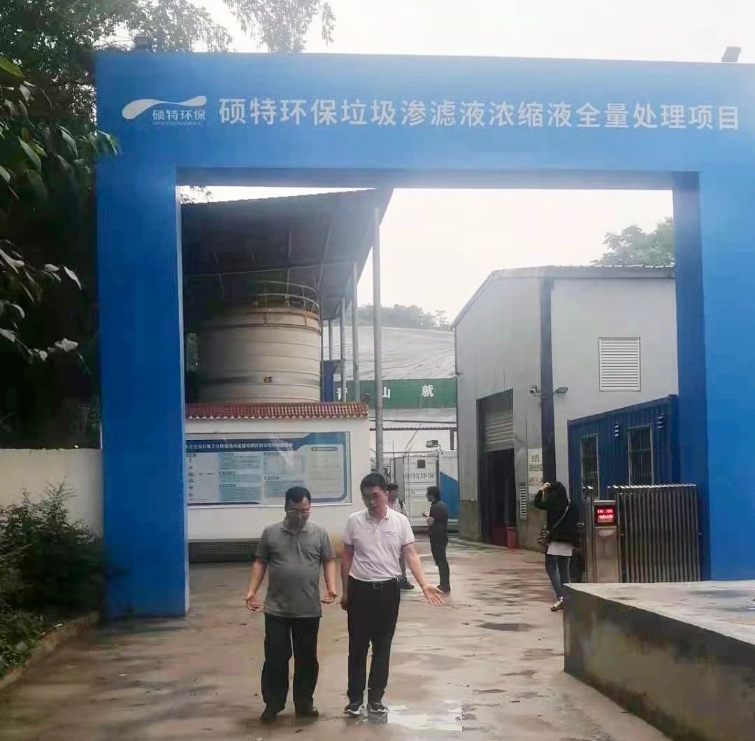 交流結(jié)束后,雙方驅(qū)車前往碩特環(huán)保擁有自主知識產(chǎn)權(quán)的全國首個濃縮液非蒸發(fā)工藝全量處置項目——仁壽垃圾滲濾液濃縮液全量處置項目進行考察。倪總和黃總親自引領(lǐng)蘭總一行參觀并對項目進行全面細致的介紹,領(lǐng)導(dǎo)專家們興趣盎然,不時對各工藝點和工藝環(huán)節(jié)進行交流發(fā)問,并提出獨到的見解,充分展現(xiàn)了環(huán)保專家的學(xué)識和風(fēng)范。項目現(xiàn)場人員表示,此次交流讓他們受益匪淺,感受頗深。